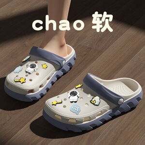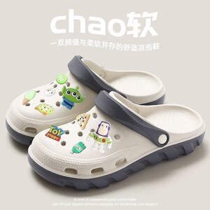 洞洞鞋情侣款2025新款夏季卡通可爱外穿包头拖鞋沙滩海边凉拖鞋女