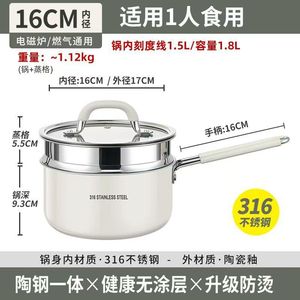 16CM奶锅+蒸格【内316钢,外陶瓷】