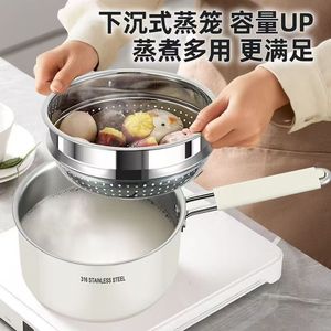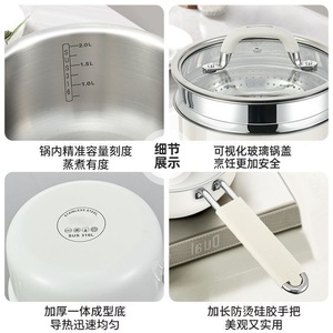 无涂层316L不锈钢陶瓷小奶锅宝宝婴儿辅食锅不粘锅蒸煮一体汤锅
