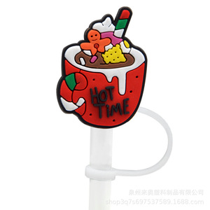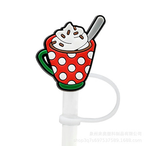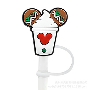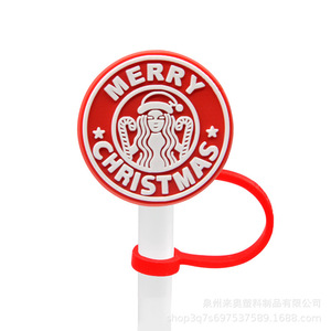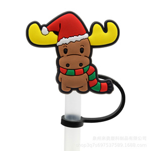 クロスボーダーカートゥーンクリスマスシリコンストローハット防塵キャップ既製品アニメミルクティーカップ防塵カバーストローカバー10mm