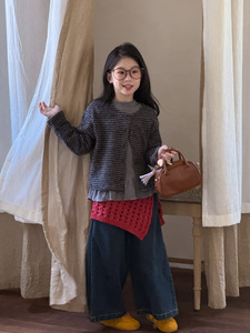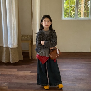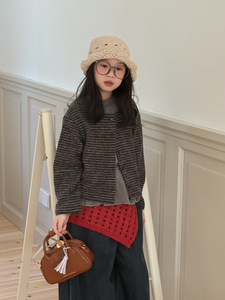 童开衫2025秋季女童韩版条纹圆领开衫儿童宽松休闲复古风上衣外套