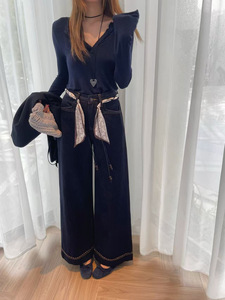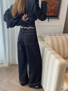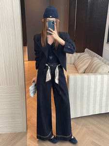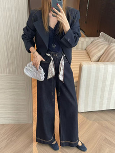 秋上新TOP欧制绣花韩版简约百搭9分桶裤不掉色牛仔裤配腰绳82537