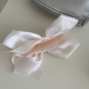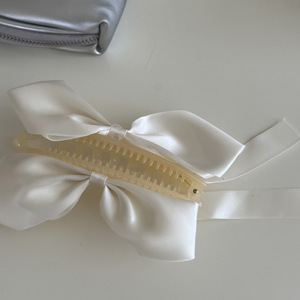 芭蕾风白色缎面蝴蝶结猫耳飘带香蕉抓夹女甜美公主鲨鱼夹头饰发饰