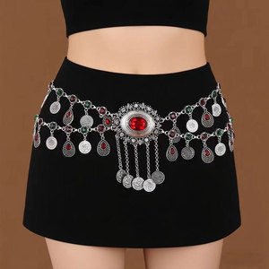 复古傣族风金属钱币腰链女可调节连衣裙腰封蝴蝶花朵流苏腰带配饰