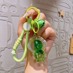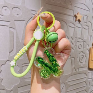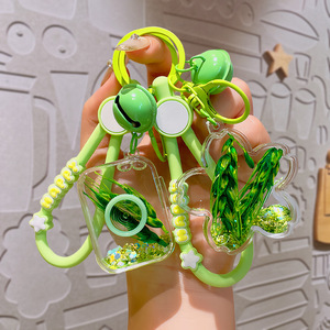 クリエイティブグリーン流砂ボトルフローティングオイルキーホルダーペンダント人形減圧小物車のキーチェーン卸売