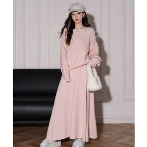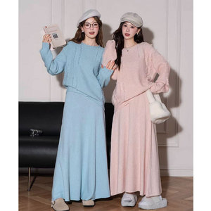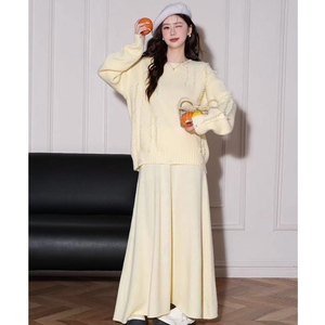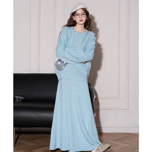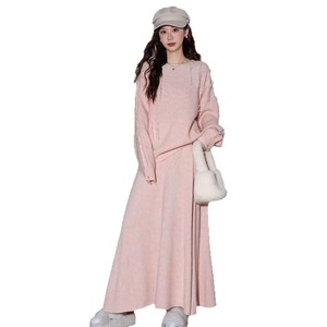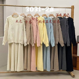 フレンチデザインタッセルセーターレディーススーツ秋冬新作ゆるいレイジースタイルニットスカート2点セット