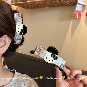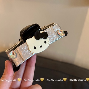 【oh oh】甜酷银色KT猫蝴蝶结高级抓夹ins极简风自制款双面发夹