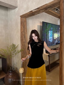南油批发2025年夏季新款重工钉金叶子真丝丝绒收腰小上衣休闲衬衫