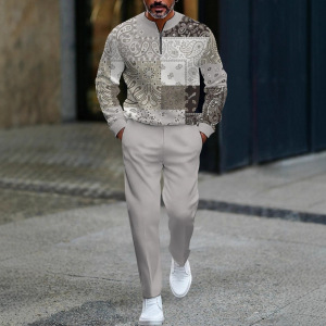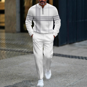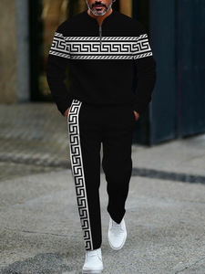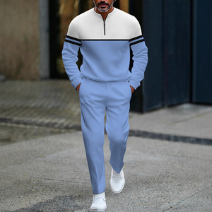 跨境欧美速卖通亚马逊3D印花男士休闲简约套装秋季运动男装潮流款