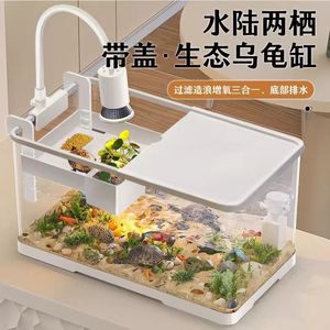 乌龟龟缸晒台家用生态造景别墅饲养巴西龟排水专用专用箱小型鱼缸