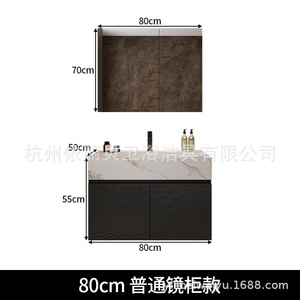 意式轻奢浴室柜岩板洗手台洗脸盆柜组合智能声控镜柜卫生间洗漱台