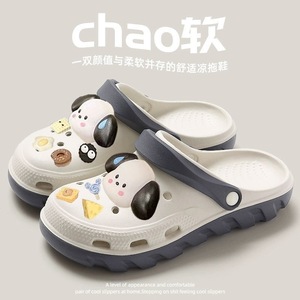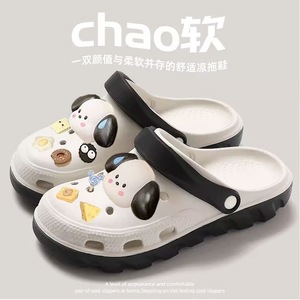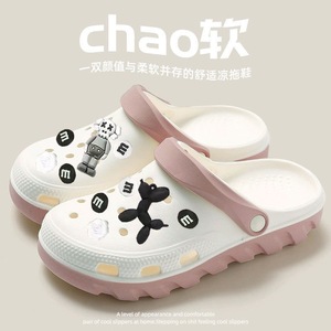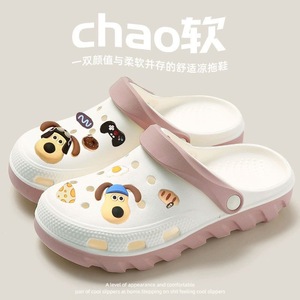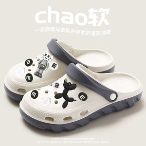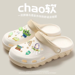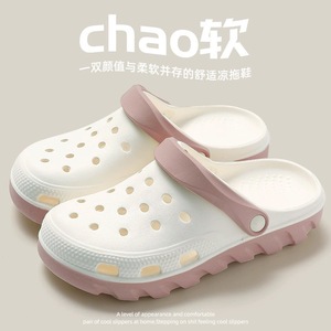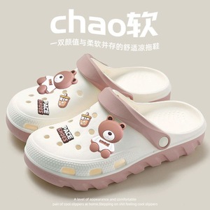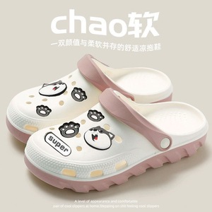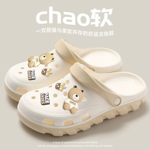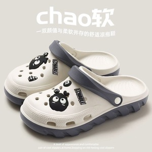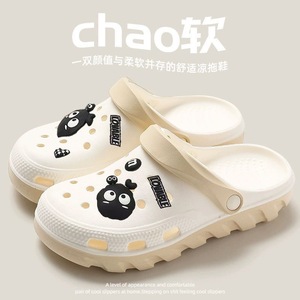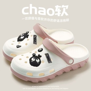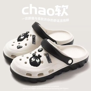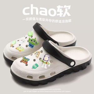 夏季防滑厚底洞洞鞋女款卡通情侣外出软底透气沙滩鞋包头凉拖鞋女