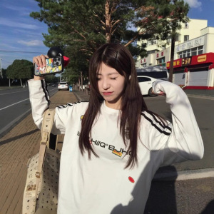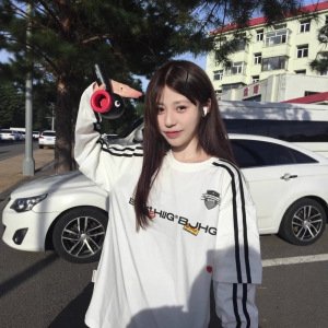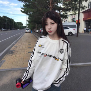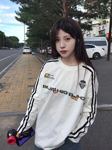 2025秋季新款通勤潮流印花字母撞色两条杠圆领纯棉长袖T恤上衣