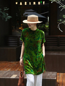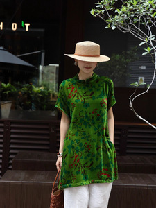 南油批发2025年夏季新款 真丝丝绒双边开衩 中长款新中式上衣衬衫