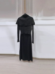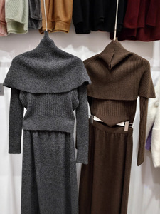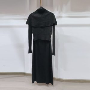 秋冬新款搭配一整套装法式高领斗篷女打底毛衣针织半身长裙三件套