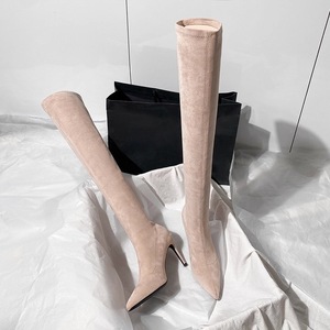 黑色高跟过膝长靴女2025新款秋冬季弹力绒面尖头高筒瘦瘦靴长筒靴