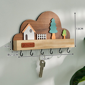 玄关入户挂钥匙收纳实木打孔墙上挂钩门口创意可爱壁挂式装饰