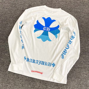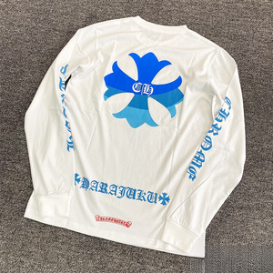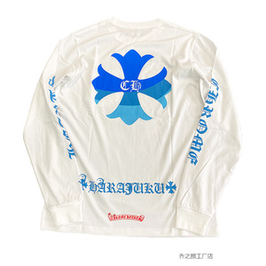 【毒家现货正确版】Ch克罗伈渐变蓝色十字文LOGO白色男女款长袖T