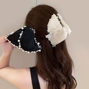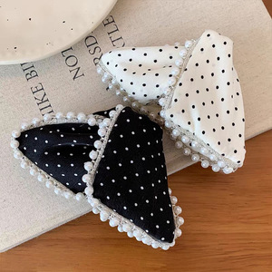 轻奢波点珍珠三角抓夹女复古新款大号小众后脑勺盘发鲨鱼夹发饰
