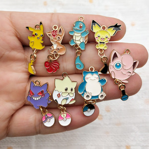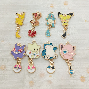 跨境卡通皮卡丘 DIY饰品配件滴油合金吊坠 钥匙扣项链耳环挂件