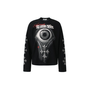 JW332美式复古街潮男女款高级感迷抽象恶眼设计男式华夫格长袖T恤
