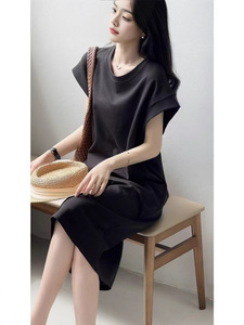 日韩休闲2025夏季大码飞飞袖连衣裙法式防走光宽松小众中长款T恤