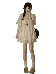 米白色两件套【时尚高级感正肩/爆款/夏季穿搭女装/名媛气质小香风/网红炸街/休闲/成套搭配/时髦/轻