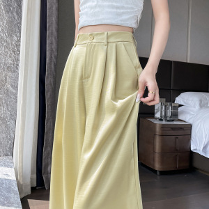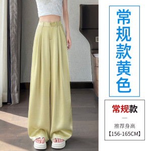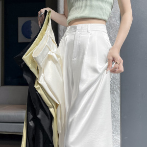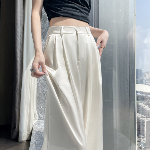 醋酸缎面白色西装裤女夏薄款高腰显瘦宽松直筒垂感拖地冰丝阔腿裤