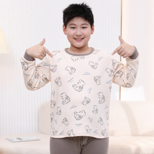 新款男孩秋衣秋裤套装纯棉胖童开洞加肥加大码全棉青少年儿童内衣