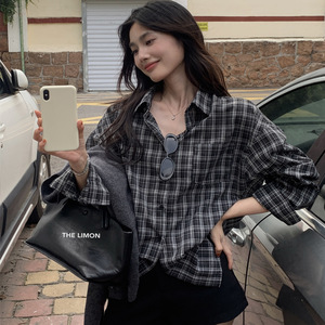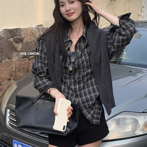 THE LEMON柠檬绿茶2025秋季港风格子衬衫外套设计感小众衬衣上衣