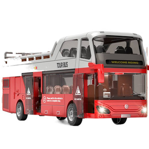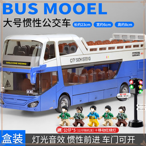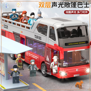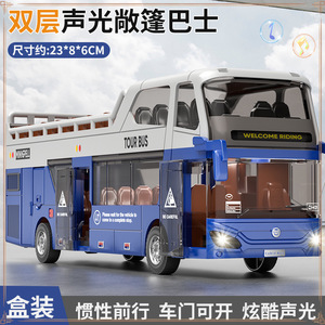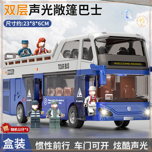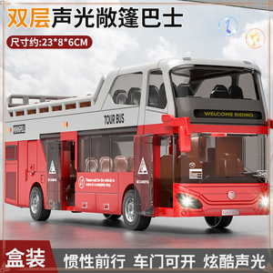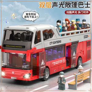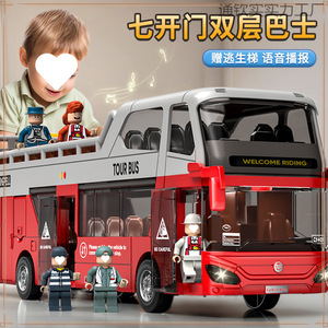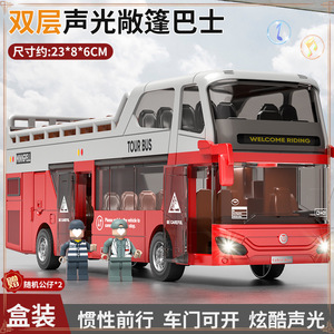 大型コンバーチブルダブルデckerバスモデル子供のおもちゃの車の音と光制御ドア開閉観光バススクールバス