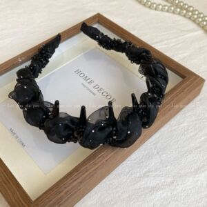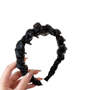 高级感轻奢纯色串珠发箍波浪带齿气质绕钻头箍外出百搭优雅发卡女