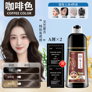 俏能染发膏纯泡泡植物染发剂流行色自然黑清水彩可盖白发代发