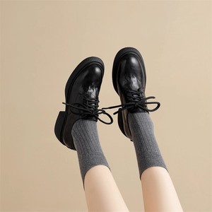 软底软面版~复古JK学院圆头厚底乐福鞋系带英伦风百搭通勤小皮鞋