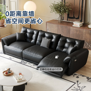 真皮电动沙发意式极简头层牛皮沙发零靠墙大三人位太空电动舱沙发