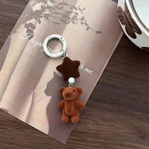 巧克力色奶芙芙的治愈软萌植绒小熊手机挂件包包挂饰ins风钥匙扣