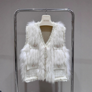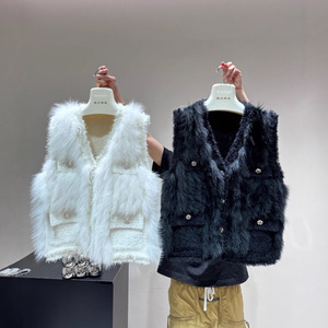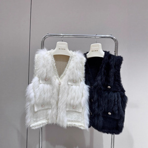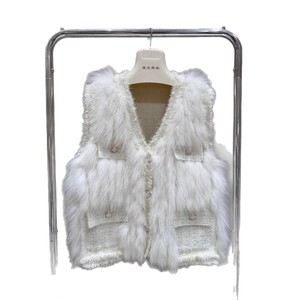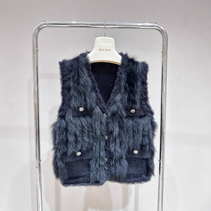 秋と冬の新しいフレンチスタイルフォックスファーステッチセーターニットカーディガンベストベストウエスタンスタイルジャケット女性用