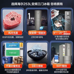 海尔253升三门电冰箱218升节能风冷无霜家用小型变频能效