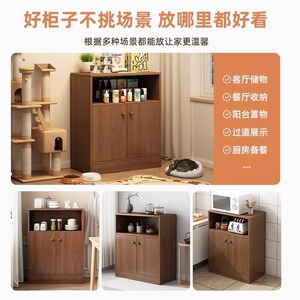 实木色茶水矮柜餐边柜子收纳柜新中式多功能家用厨房客厅靠墙边柜