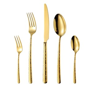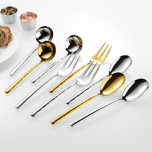 高档酒店餐厅精品锤纹西餐具全系列金色餐刀餐叉餐勺公用叉勺轻奢