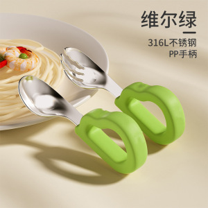 【316素材アップグレードエルボスプーン】グリーンオイルフルーツグリーンフォークスプーン⚑⚑