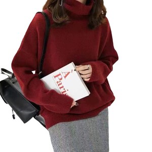 欧货跨境秋冬厚款高领女宽松百搭针织套头毛衣慵懒风打底衫外穿女