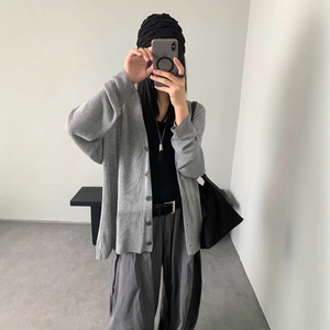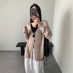 2025 春と秋の新韓国スタイル無地シンプルなルーズレイジースタイル V ネックニットリネン感触多用途カーディガントップ女性のための