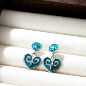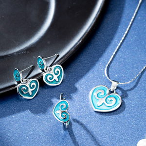 哈萨克复古新疆民族风天蓝羊角纹设计耳环戒指项链三件套简约首饰