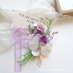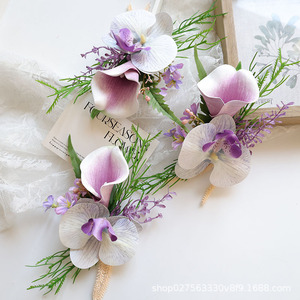 艺雅阁 25021结婚用品嘉宾胸花襟花手花浅紫色马蹄莲蝴蝶兰仿真花