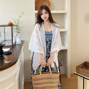 中空レトロエスニックホリデースタイルレディースニットタッセルカーディガンレディース薄手春秋ショールアウターレースショール