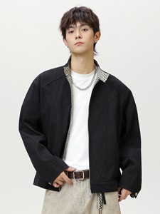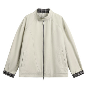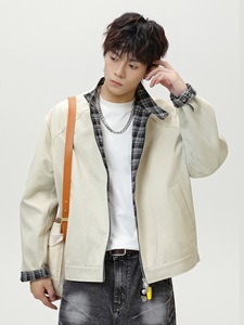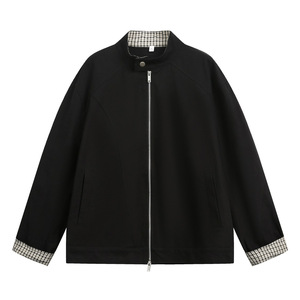 拼接格纹设计哈灵顿夹克男秋季新款复古休闲立领开衫短宽潮牌外套
