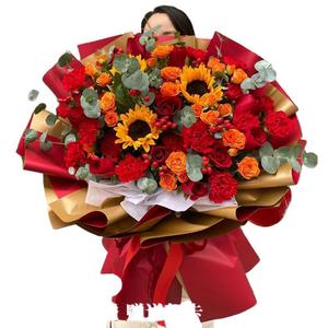 【福林吉祥】ひまわりと赤いバラのミックスバケツ