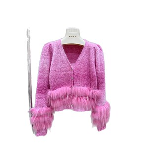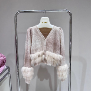 Vネックセーターレディース甘くて優しい2025秋冬新作ショートスリムフィットラクーンファーステッチニットカーディガン