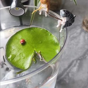 日系/鱼缸/庭院摆件-肥肥猫钓鱼/绿叶上得小虫虫